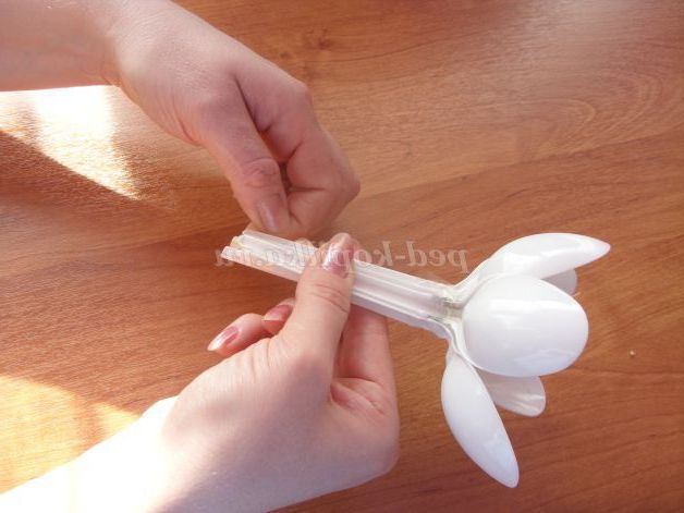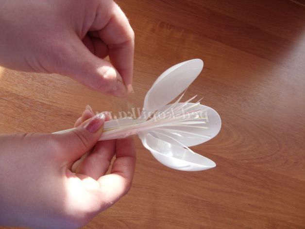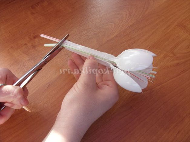 5.Первый пелюстка (пластикову ложку) і готову коктейльні трубочки скріплюємо скотчем.