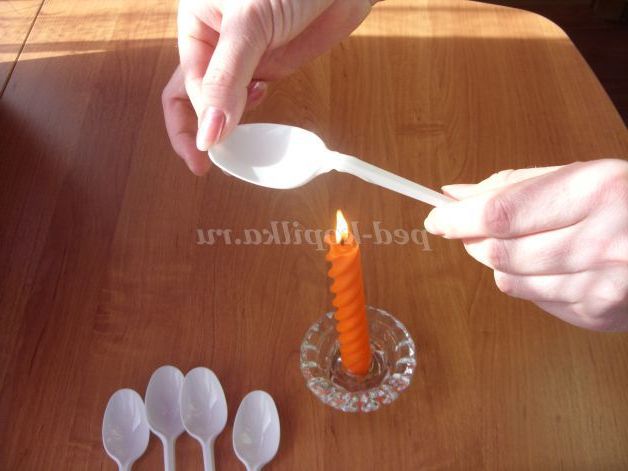 2.3.Чтобы надати ложок вигнуту форму, потрібно трохи потримати їх над свічкою.