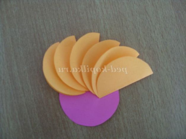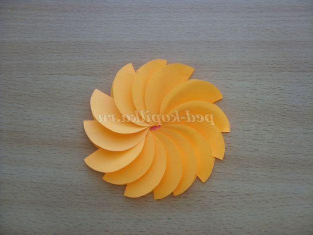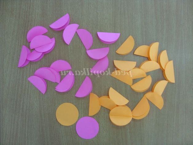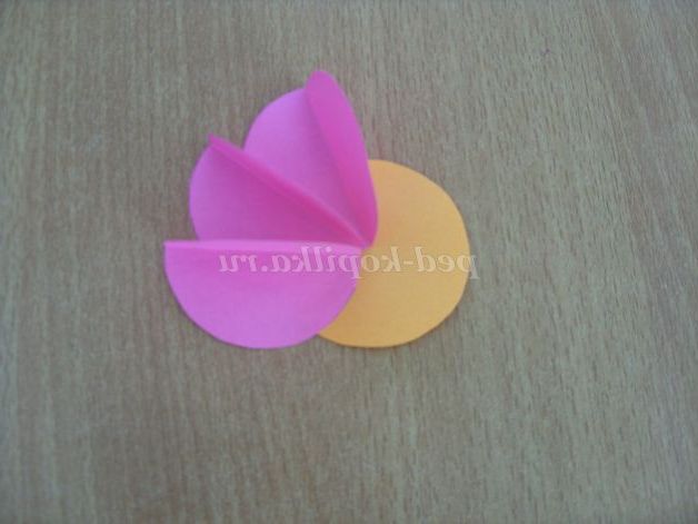 4. Згинаємо навпіл, залишаємо не зігнутими тільки два кола. Це майбутні пелюстки.