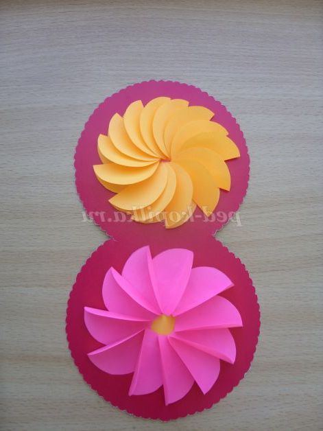11. Наші квіти наклеюємо на середини вісімки. Подивіться, яка чудова вийшла листівка у вигляді цифри вісім.