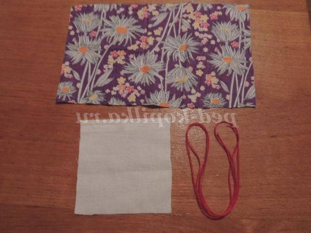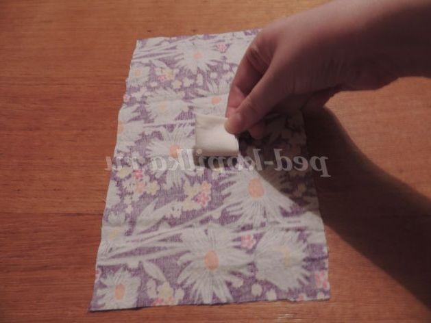 .Маленький шматочок тканини потрібно скачати і покласти в центр прямокутного клаптика.