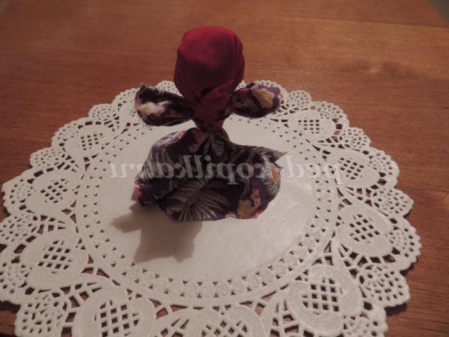 На голову ляльки можна зав'язати яскравий платок.Кукла готова,я Вас вітаю!
