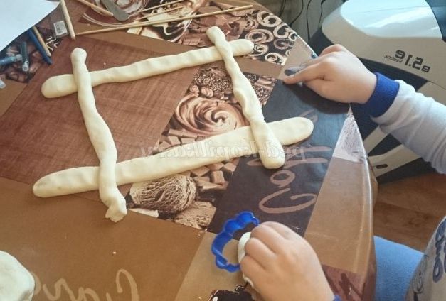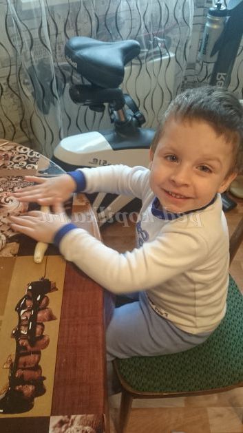 2. З отриманого тіста формуємо ковбаски, які в майбутньому стануть каркасом рамки. Ми не ставили за мету зробити їх рівними, а намагалися дати максимум самостійності дитини в процесі виготовлення поробки)