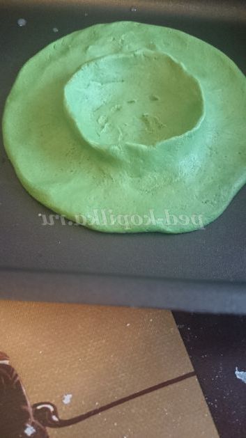 5. Сушимо наш виріб. Ось кілька секретів: виріб із тіста краще сушити на відкритому повітрі, але коли часу мало, то можна допомогти їй висохнути, помістивши в духовку. Запікати стоїть на самому маленькому вогні і краще з відкритою або прочиненими дверцятами духовки. Якщо виріб зарум'яниться трохи сильніше - не біда, на наступному етапі ми будемо покривати її фарбою.