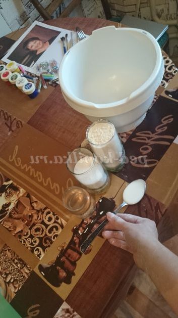 1. Готуємо тісто. Для цього змішуємо сіль(1/2 склянки) і борошно(1 стакан), в отриману суміш додаємо воду(150 мл). Додаємо поступово, щоб контролювати в'язкість тіста. Додаємо 1 столову ложку клею ПВА, для кращої пластичності.