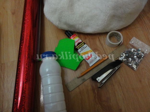 паєтки, стрічка, клей, пляшки від молочних продуктів.
