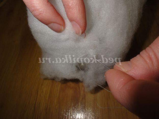 6.Начинаем збирати сніговика: пришиваємо ручки