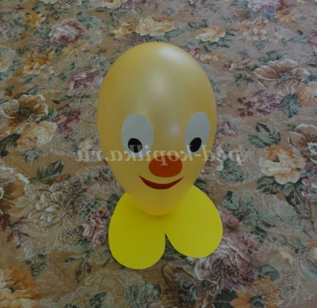 Діти закидають кулі, але вони не можуть відлетіти далеко, так як кулі легкі, швидко опускаються на підлогу і стають на ніжки, як їх не кидай.
