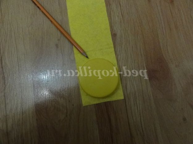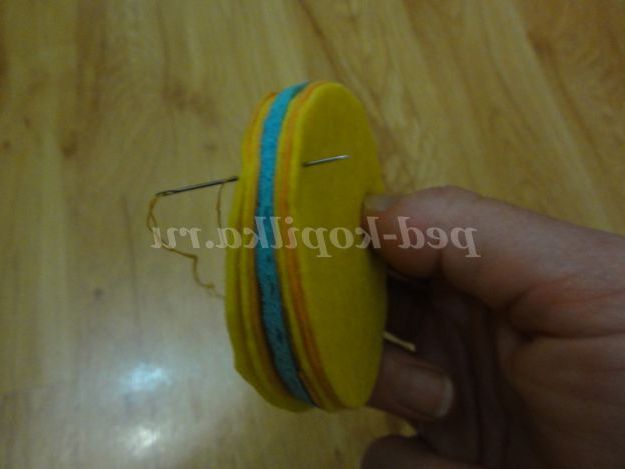 3. Прошиваємо стопку, по центру протикаємо всю стопку і стягаємо шари однією ниткою. Закріпіть її зі зворотного боку.