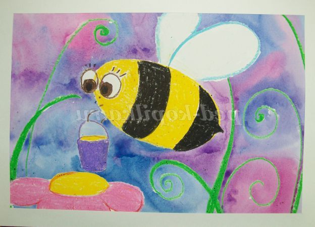 ![]() Майстер-клас з малювання. Техніка малювання: олійна пастель + акварель.Мастер - клас: «Малюємо бджілку»
