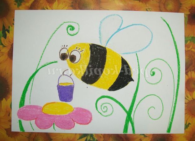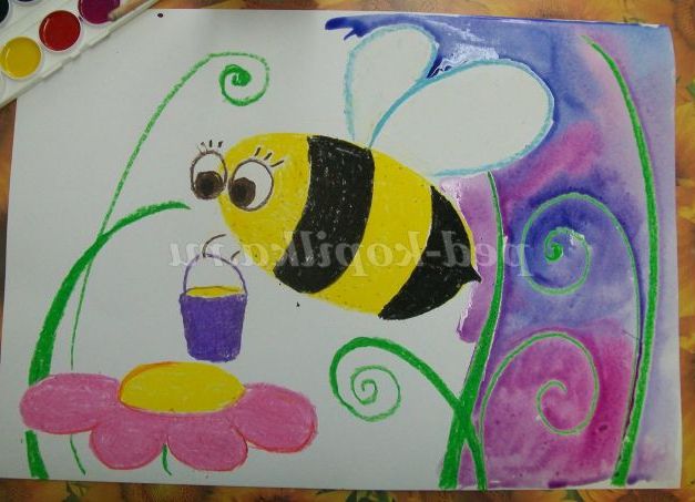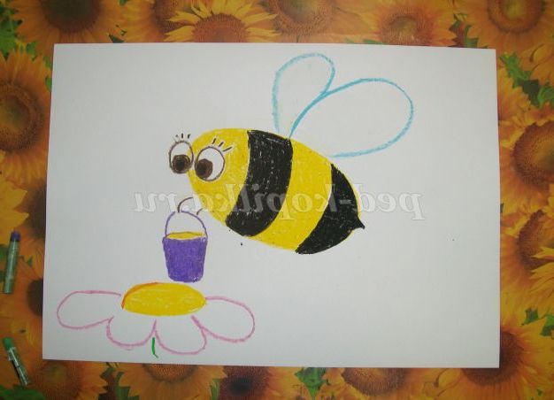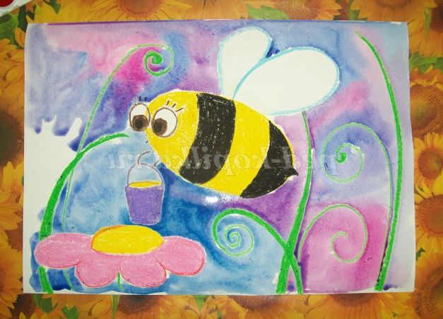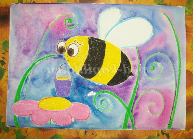 Вашій увазі я хотіла б запропонувати техніку, яку дуже часто використовую на заняттях малювання з дітьми дошкільного віку. Тема малюнка «Забавна бджілка».