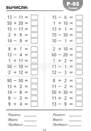 Оригінальна і сама подача завдань. Основна частина складається з листів з прикладами у дві колонки, в кожному стовпці блоками по 5 прикладів - 15 виразів, під стовпчиками три рядки: