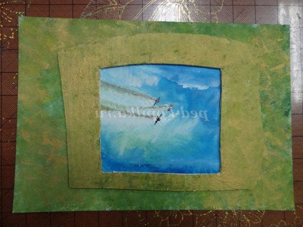 6. Із зворотного боку рамку промазати клеєм «Момент» і приклеїти фон з літаками. (Малюнок 11) (Малюнок 12)