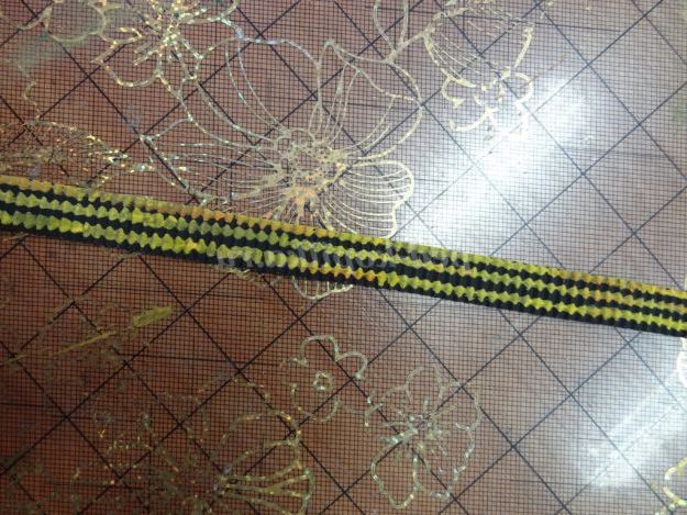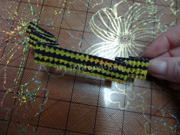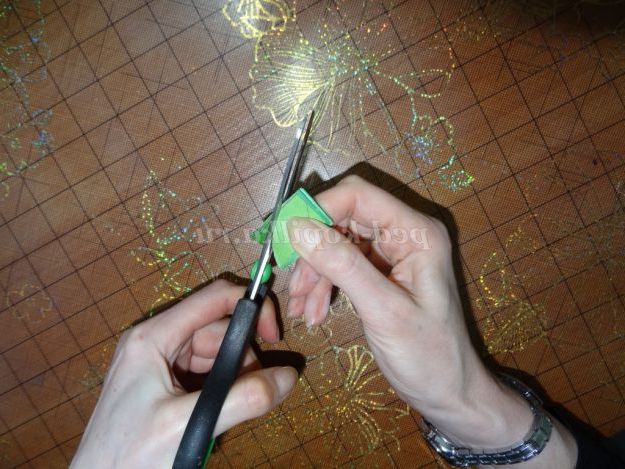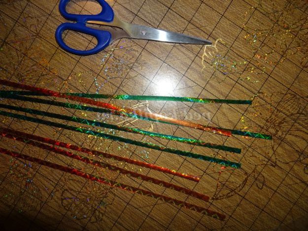 9. На аркуші зеленого паперу прочерчиваем лінії (ширина 2 см), нарізаємо смужки. (Малюнок 15)