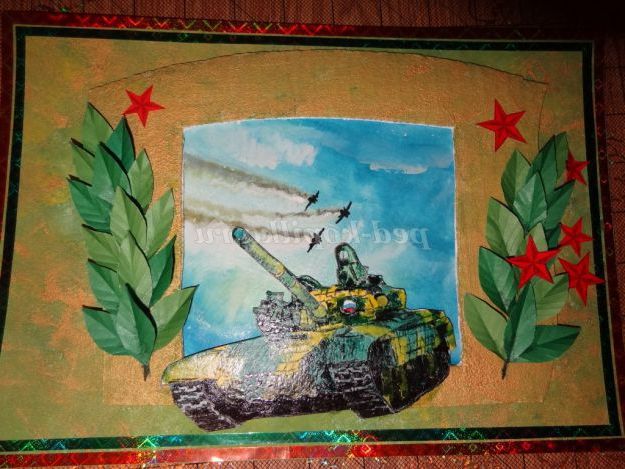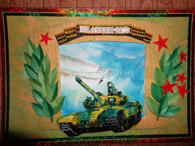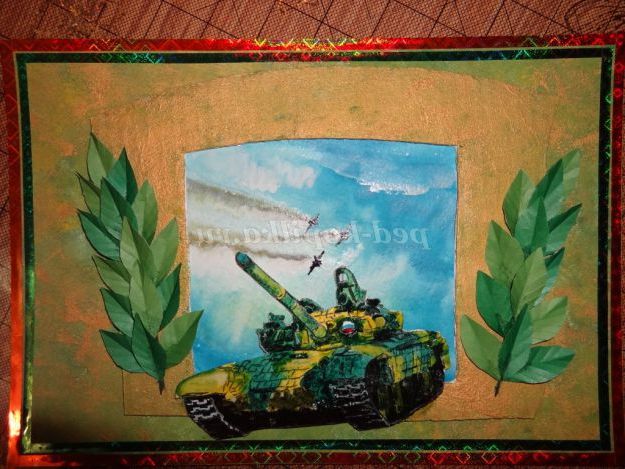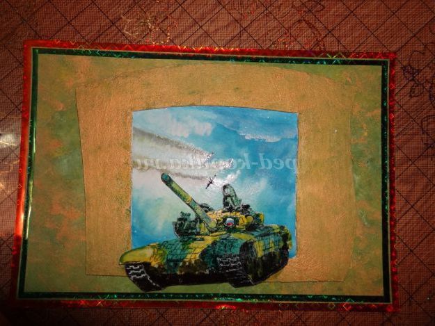 Опис матеріалу: отримувати подарунки приємно отримувати подарунки, зроблені своїми руками - приємно подвійно. Не знайдеться жодного тата, дідуся або старшого брата, який не зрадів би, отримавши на день Захисника Вітчизни танк, нехай і намальований. Зробити листівку своїми руками зовсім не важко, в чому ви можете переконатися, вивчивши майстер-клас.