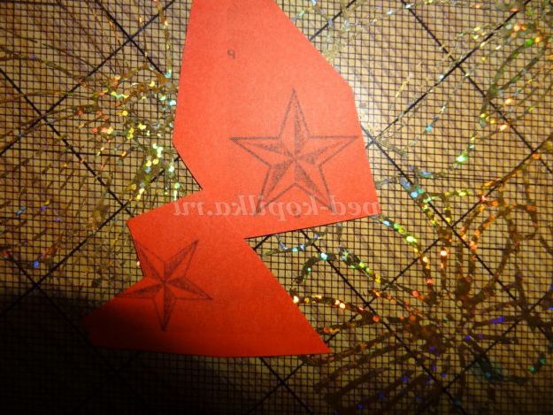 18. На червоному аркуші кольорового паперу, малюємо зірочки різного розміру і вирізаємо. (Малюнок 29)
