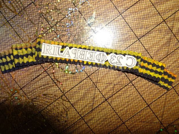 20. Роздруковану дату свята вирізаємо і приклеюємо на георгіївську стрічку. (Рисунок 31) (Малюнок 32)