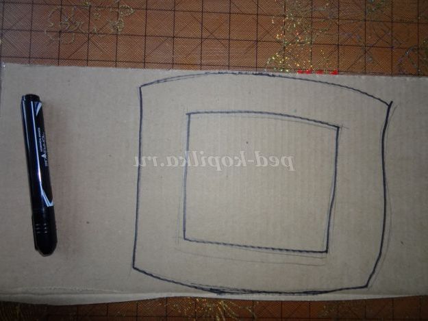 3. На коробковому картоні намалювати (довільно) рамку і вирізати по контуру. (Малюнок 6) (Малюнок 7)