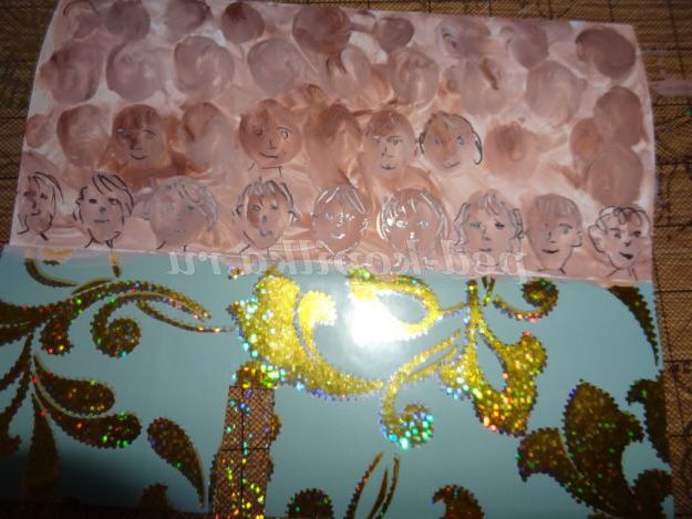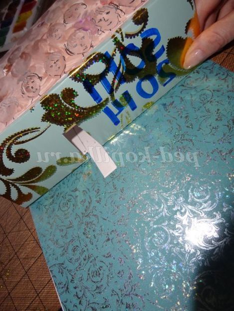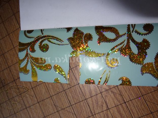 10. З кольорової фольги з візерунком, вирізаємо смужку 9 см / 25 см і наклеюємо на отримане огорожу