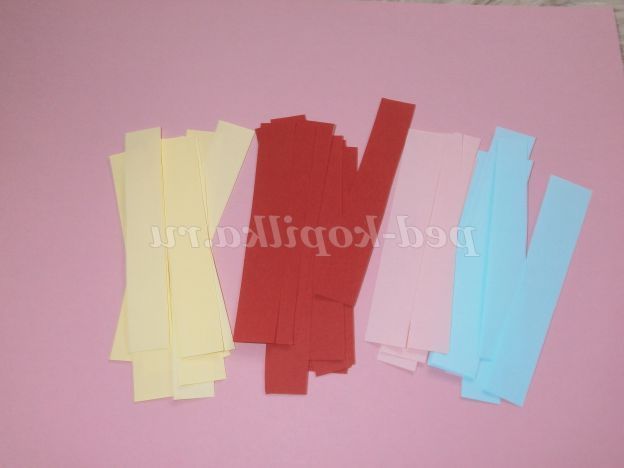 1. Нарізати папір на рівні смужки по 1 см шириною і рівної довжини . Розмір залежить від того, які ланки ланцюжка ви хочете отримати. Головне, щоб у процесі виготовлення гірлянди з ними було зручно працювати.