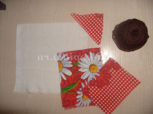 • Тепер беремо клаптя трикутної форми і пов'язуємо на голову ляльці. (фото8)