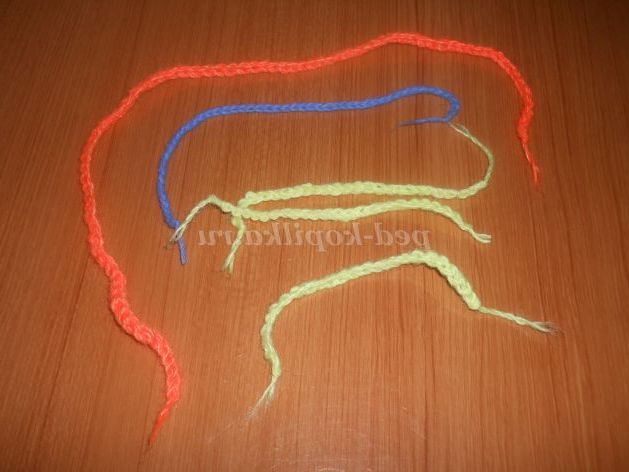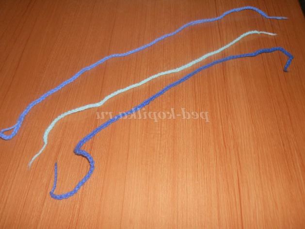 Один ланцюжок синій ниткою, одну - світло-синьою ниткою, і одну - блакитною ниткою.