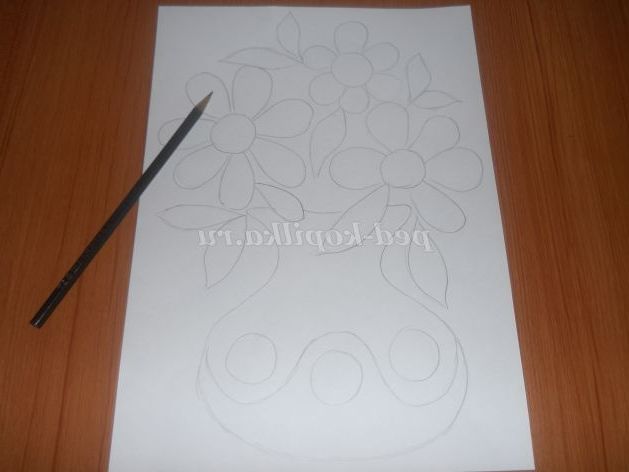На альбомному аркуші малюємо олівцем вазу з квітами.