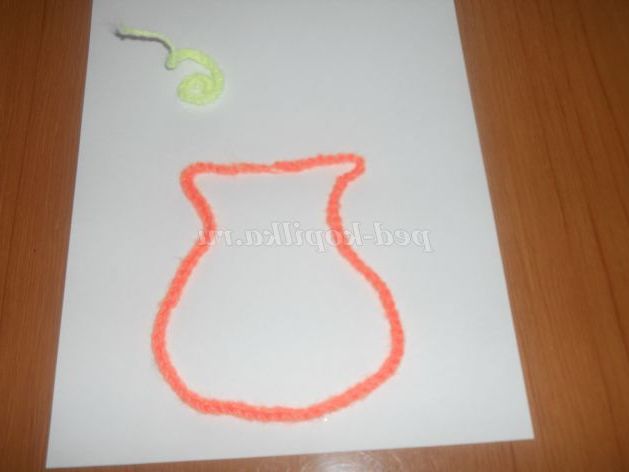 Першим ми будемо наклеювати ланцюжок помаранчевої ниткою на вазу.
