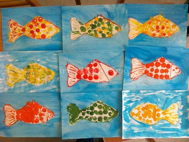 малювання для дошкільнят, малювання пробкою, конспект, золота рибка, заняття з в середній групі