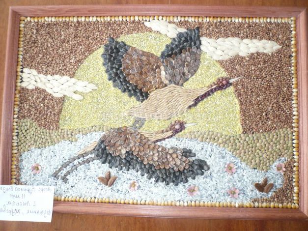 - навчити можливостей оформлення насінням і крупами, створюючи настінне панно.