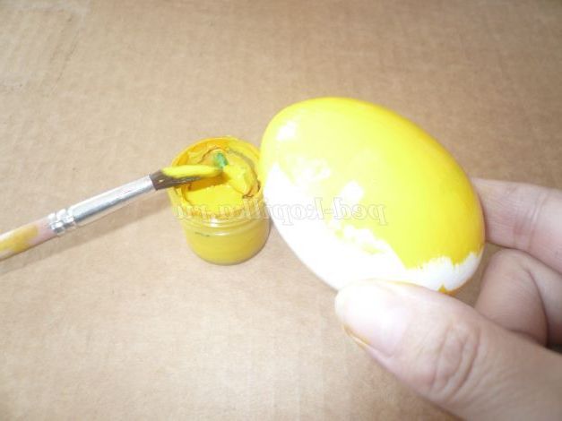 Акуратно, наносимо жовтий колір, зайву фарбу, можна зняти, зробивши один мазок на аркуші паперу.