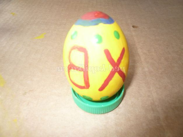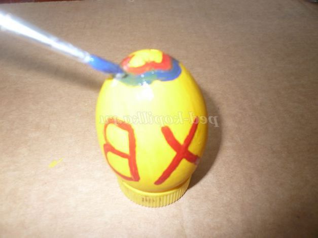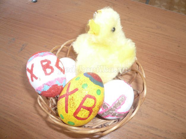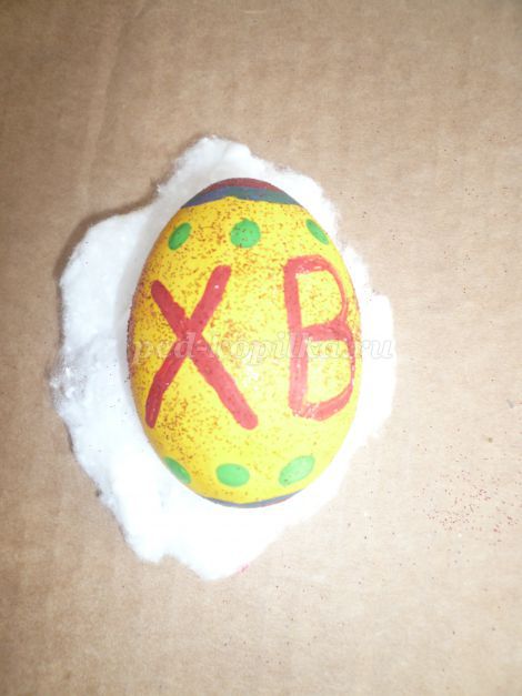 Намалювати в середині яйця напис ХВ (це означає - Христос воскрес), для цього потрібна гуаш червоного кольору і кисть № 2.