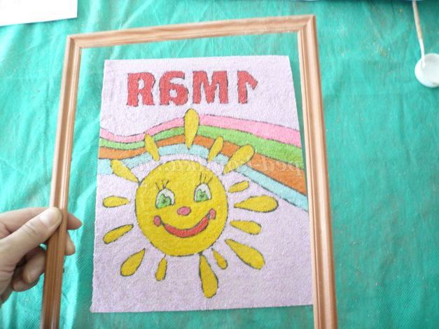 Майстер - клас " Мозаїчна аплікація з пофарбованих тирси до 1 травня"