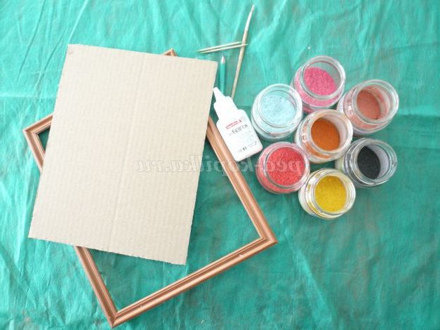 Використовуємо для роботи звичайні тирсу. Перед подальшим використанням тирсу слід пофарбувати гуашшю або кольором, висушити, просіяти.