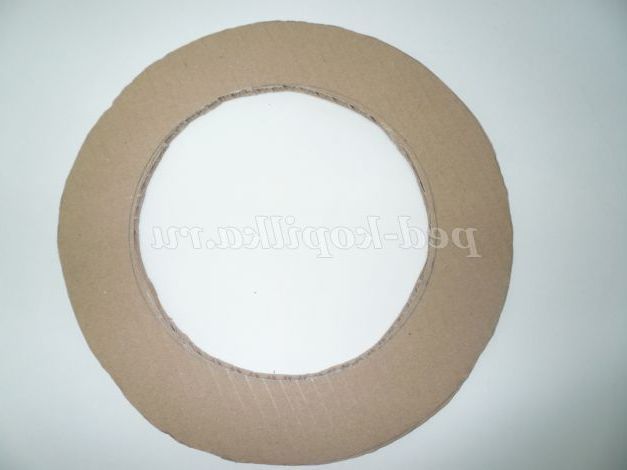 Для початку потрібно зробити каркас. Для цього вирізаємо з гофрокартону коло, який і буде служити для основи нашого різдвяного вінка.
