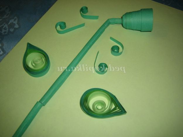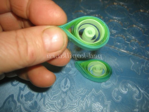 24. Заклеїти край, надати ролу форму листочка, притиснувши пальцями з одного боку.