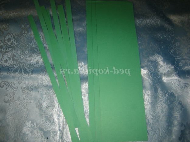17. Для чашечки квітки треба взяти зелену папір. Нарізати смужки шириною 10мм. Склеїти їх між собою - довжина 220см.