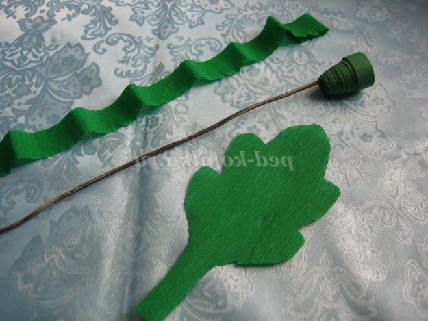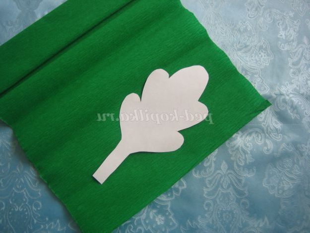 22. По шаблону з зеленої гофрованого паперу вирізати 1 або 2 листочка для ромашки.