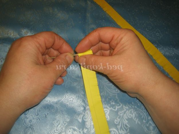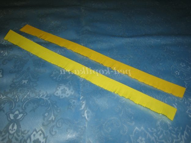 1. Почнемо робити ромашку з серединки квітки. Візьмемо дві жовті смужки різного відтінку шириною 2 см, довжина 30 см
