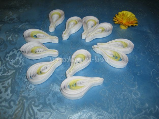 7. Для пелюсток нарізати смужки білого і світло-жовтого кольору.