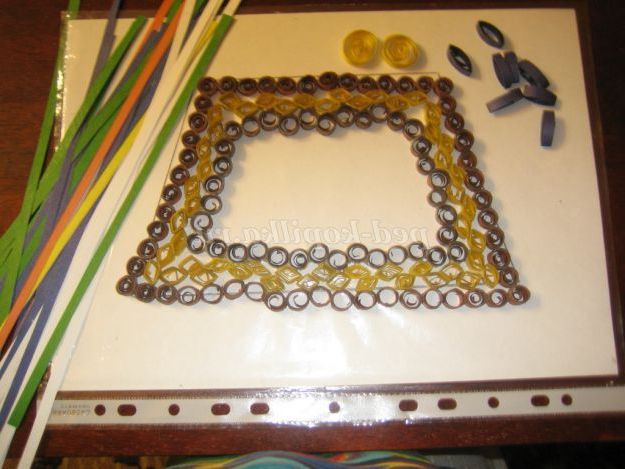 3. Коричневі роли викласти по контуру трапеції, склеїти між собою.