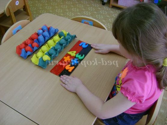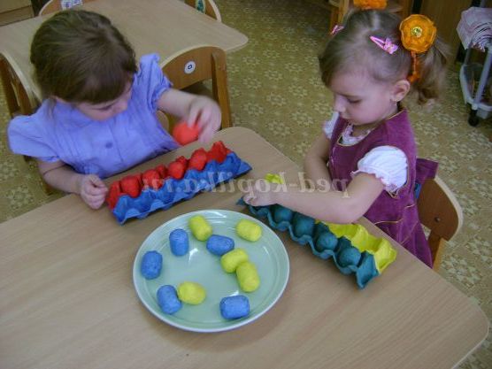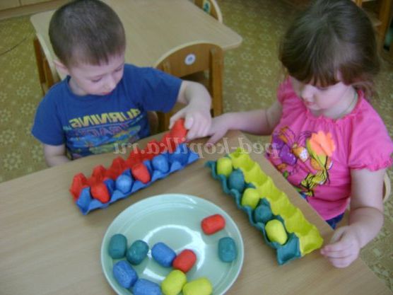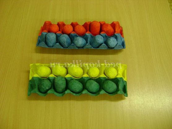 Потім просить дитину розкласти, наприклад, жовті яєчка в зелені осередки і т. д.