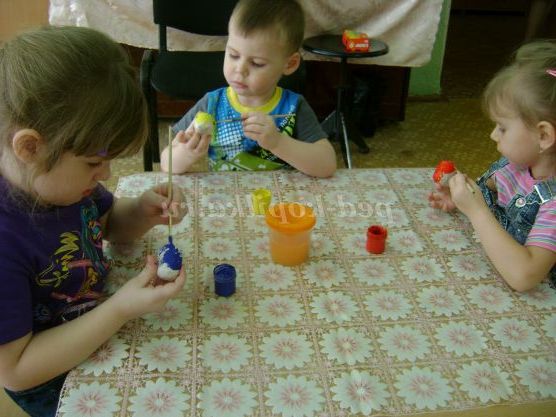 Хід гри: Вихователь пропонує дітям виконати чергування, наприклад, червоних і жовтих яєчок.