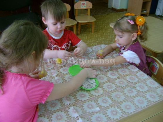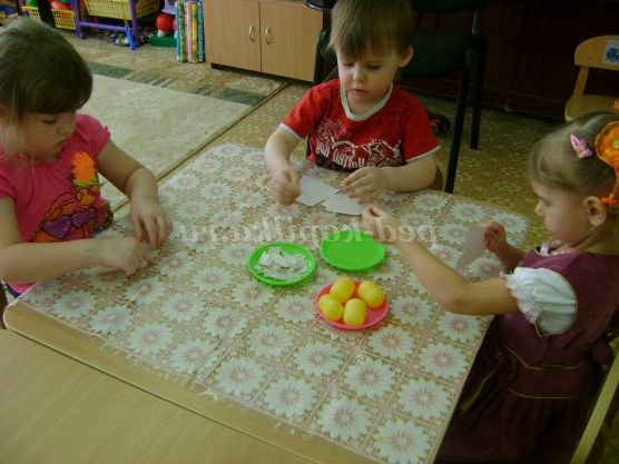Вихователь пропонує дітям розкласти яєчка в осередки відповідно знань складу