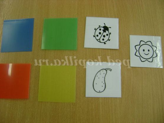 Завдання: закріплювати знання 4-ох кольорів; вміння співвідносити картинку і кольорове скельце.