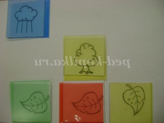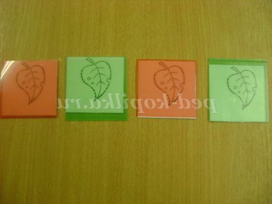 Хід гри: вихователь пропонує дітям розглянути викладені в ряд різнокольорові листочки і подумати, який листочок треба покласти наступним, щоб продовжити ряд.