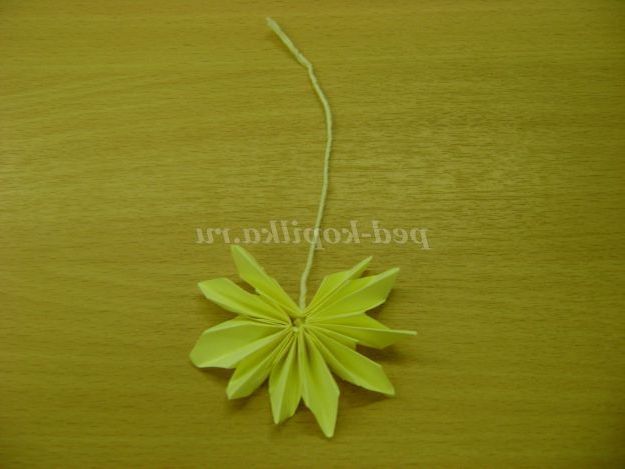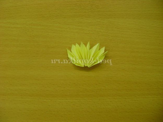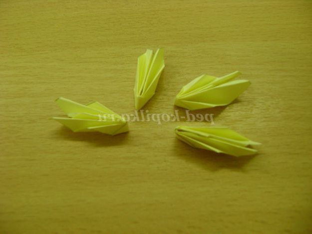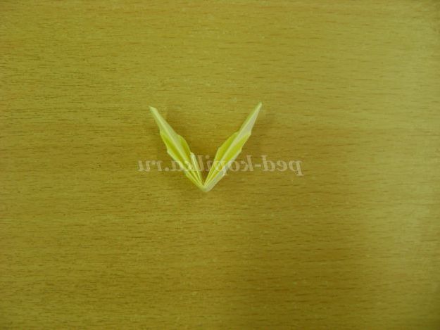 8. Беремо отриману заготовку і складаємо його навпіл. Вийшов модуль у вигляді галочки.