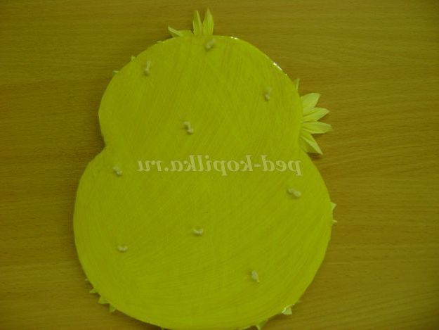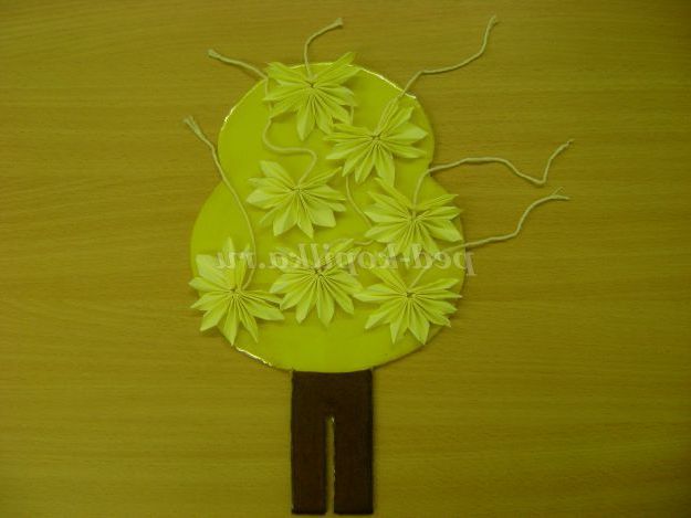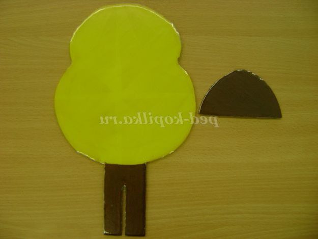5. Розфарбовуємо крону дерева жовтим кольором, а стовбур і підставку коричневим з допомогою гуаші.