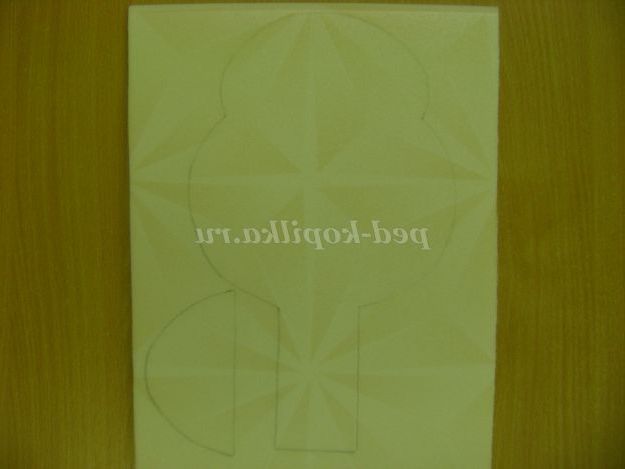 1.Рисуем на аркуші А 4 дерево і підставку для нього у вигляді півкола.