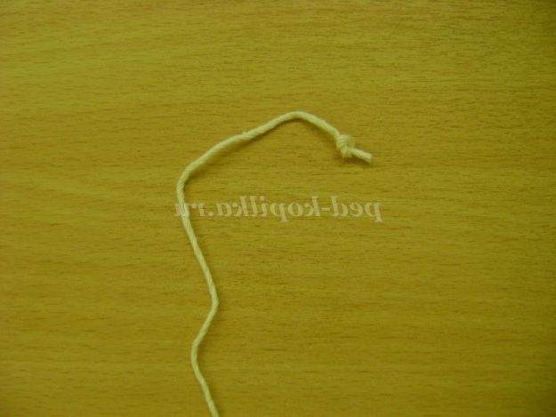 Перевертаємо на лицьову сторону, смикаємо за ниточку до упору (до вузлика), перевіряємо, як лист закріпився. Він повинен вільно розгойдуватися на нитці.